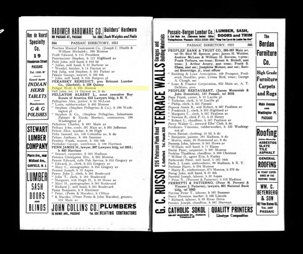 Wolf & Esther Peligal 1927 Passaic City Directory
