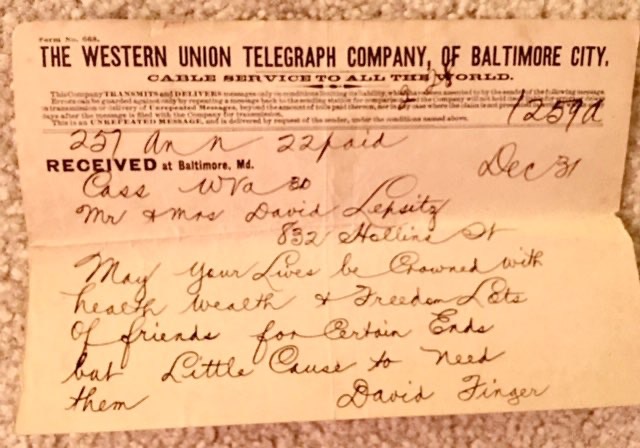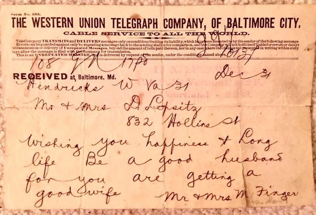 M&M D Lipsitz Wedding Telegram from David Finger