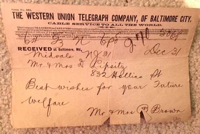 M&M D Lipsitz Wedding Telegram from M&M Nathan Flax
