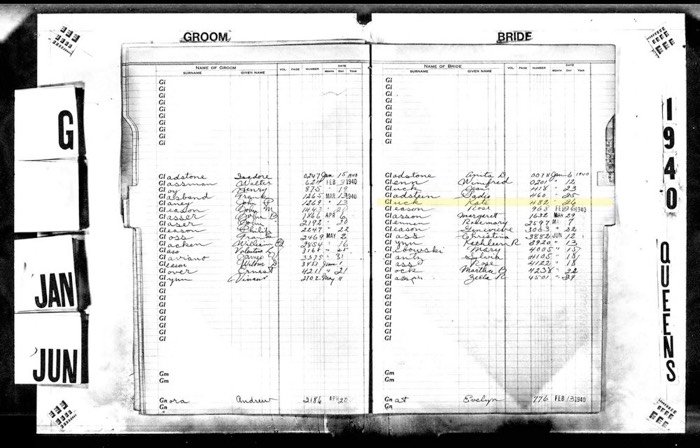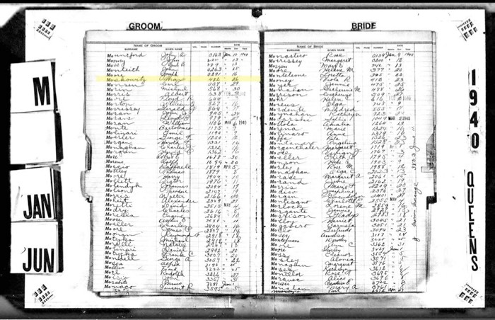 Max Moskowitz to Kate Gluck Marriage Record Index