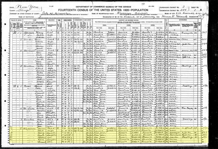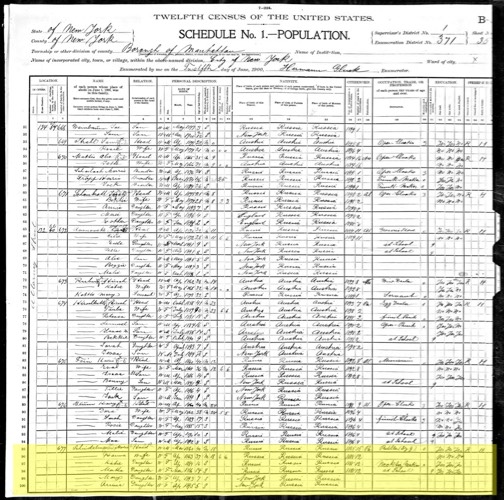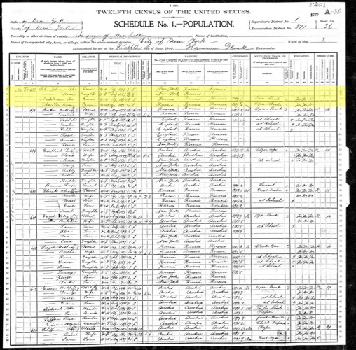 1900 US Census-Page 1 of 2 Moses Schindelman Family Manhattan, NY