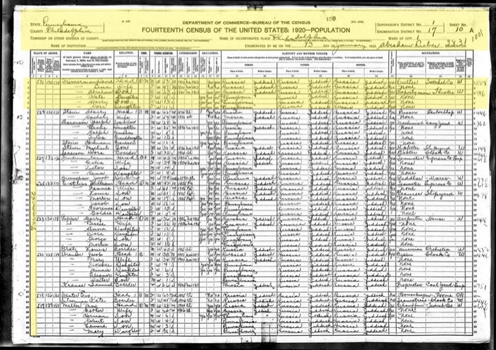 1920 US Census David Frimerman Family