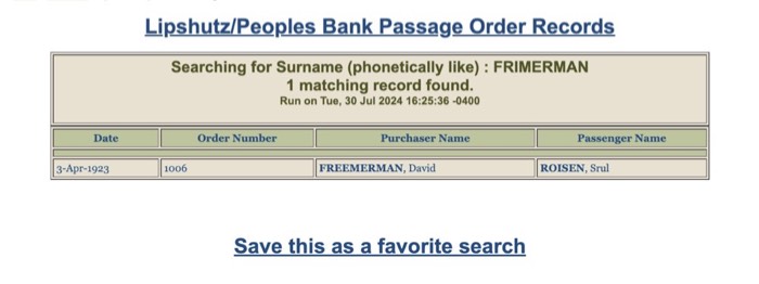 David Frimerman Family Passenger Arrival 16 Jun 1902