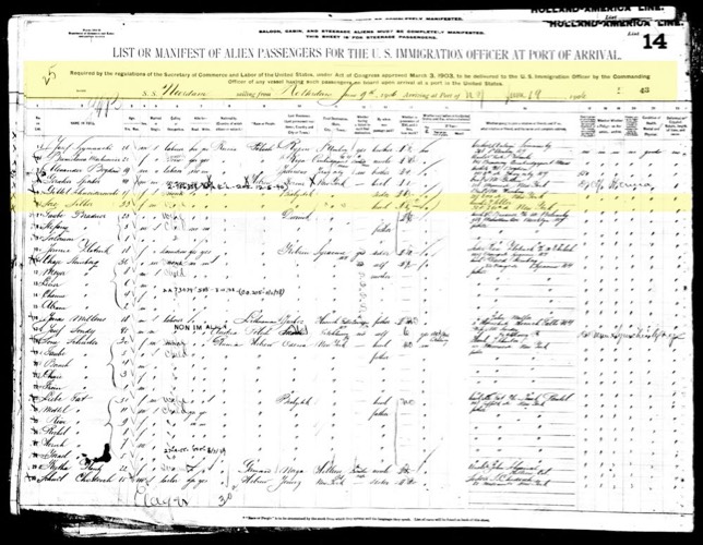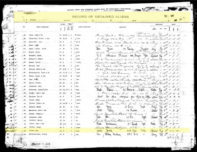 Sara Schwartz Silver (Sore Silber) 19 Jun 1906 Detained Alien