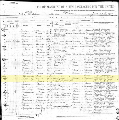 Morris Snitkoff Passenger Arrival Manifest 1914