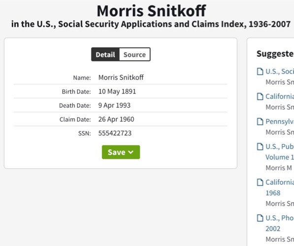 Morris Snitkoff Soc. Sec Claim Info