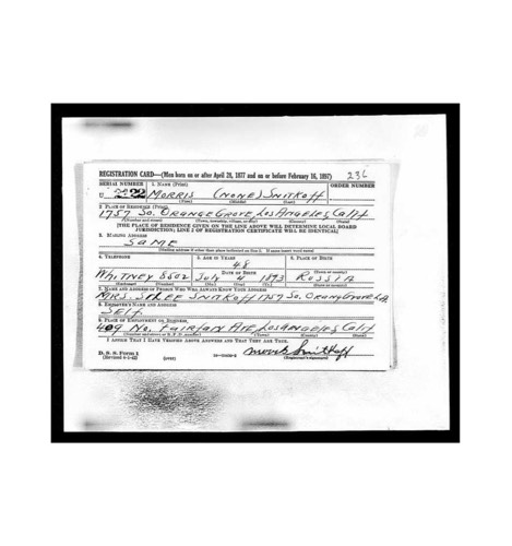 Morris Snitkoff WW II Draft Reg