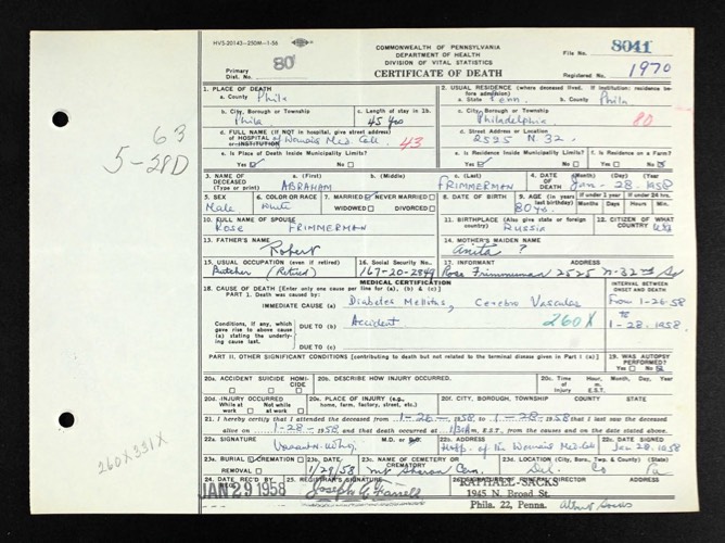 Abraham Frimerman Death Certif - 1958