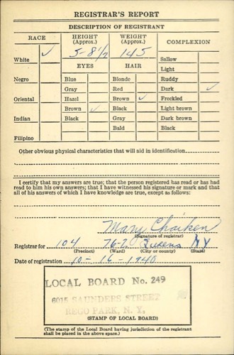 Uriel Flax WWII Draft Registration Card-Rear