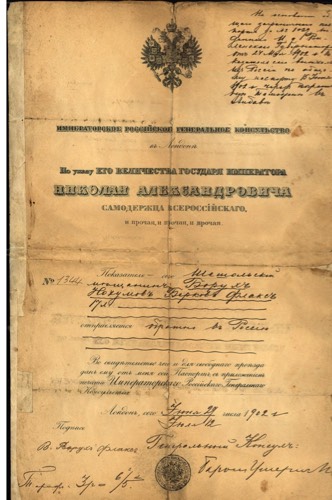 Barnett Flax - Russian Passport 1902