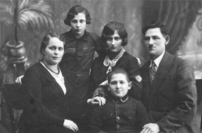 (L-R) Genya, Lubeh, Unknown Older Daughter, Ahron (Arie), Ben Zion Flaks