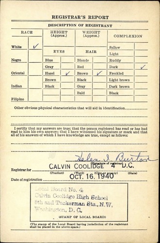 Paul Flax WW II Draft Reg Card-Rear