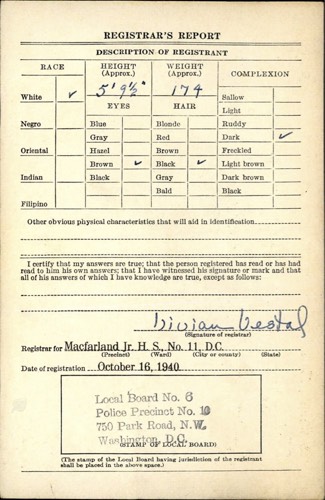 Victor Flax WW II Draft Reg. Card-Rear